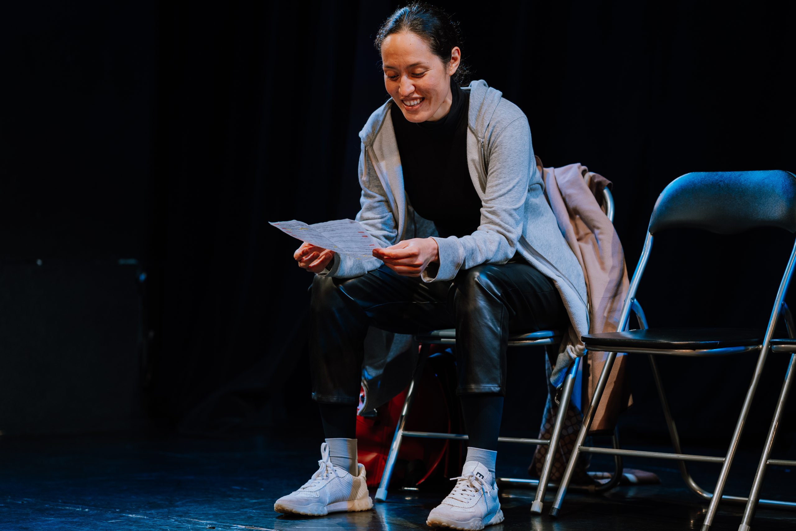 L’idée étant que nous les accompagnons dans le fait d’être lisibles tout en étant observés. On part de certaines constatations, ou de présupposés : un acteur qui est sur scène a une tendance évolutionniste à voir le trac, à se sentir jugé, à potentiellement manipuler son expérience. Quand on se sent observé, on tend à agir différemment, à contrôler en particulier nos émotions, à essayer de contrôler la manière dont nos intentions sont perçues par le public, etc. Pour des raisons évolutionnistes : on n’a pas envie d’être jugé par le groupe, on a peur d’être exclu socialement, etc.